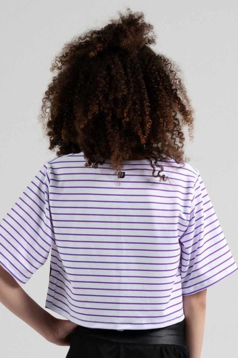 Sylvia P designed this cropped oversized t-shirt with large branding & a crazy fun stripe. Made from a cotton feel fabric that is oh-so-soft to touch meaning it is comfortable to wear all day long.